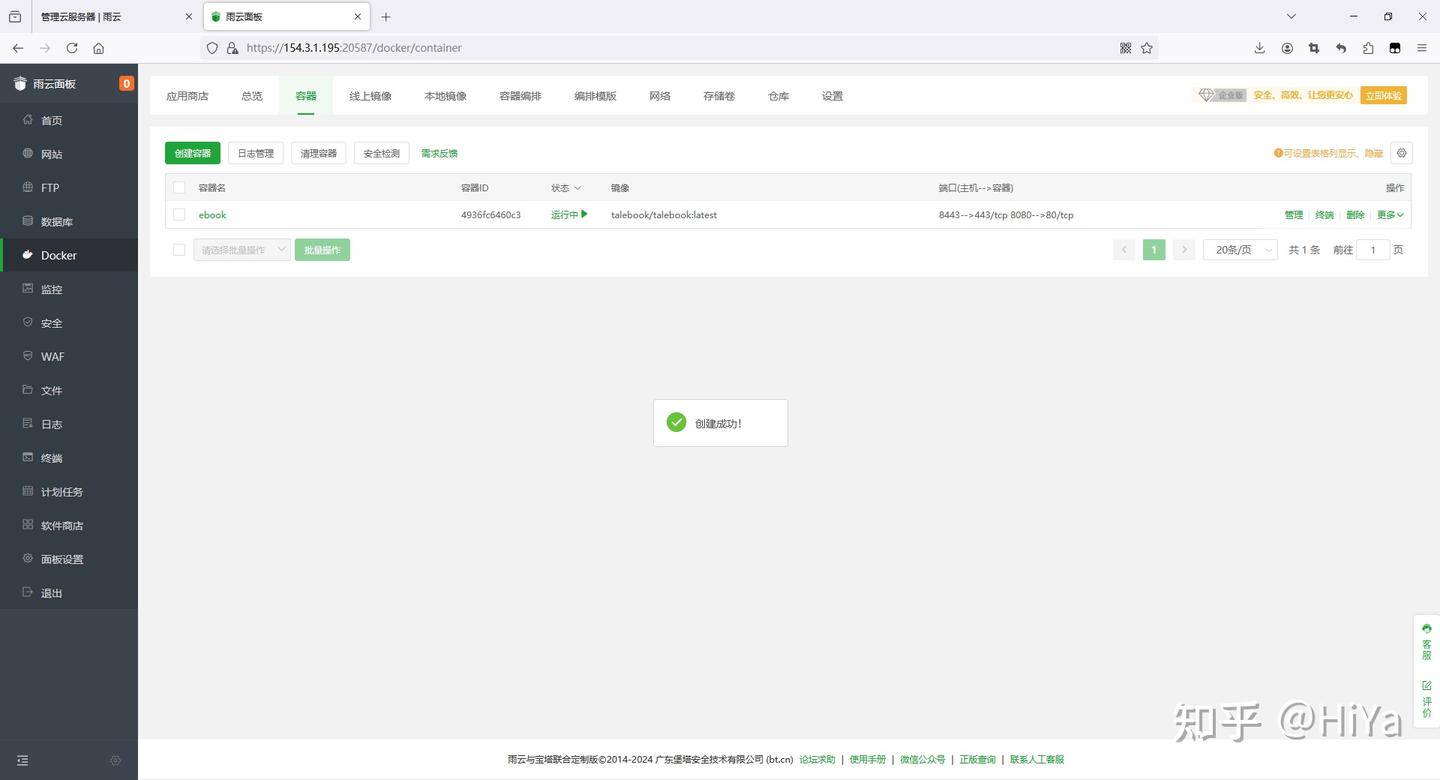 如果端口创建不成功,请在容器管理中再次设置端口映射,否则公网无法访问。