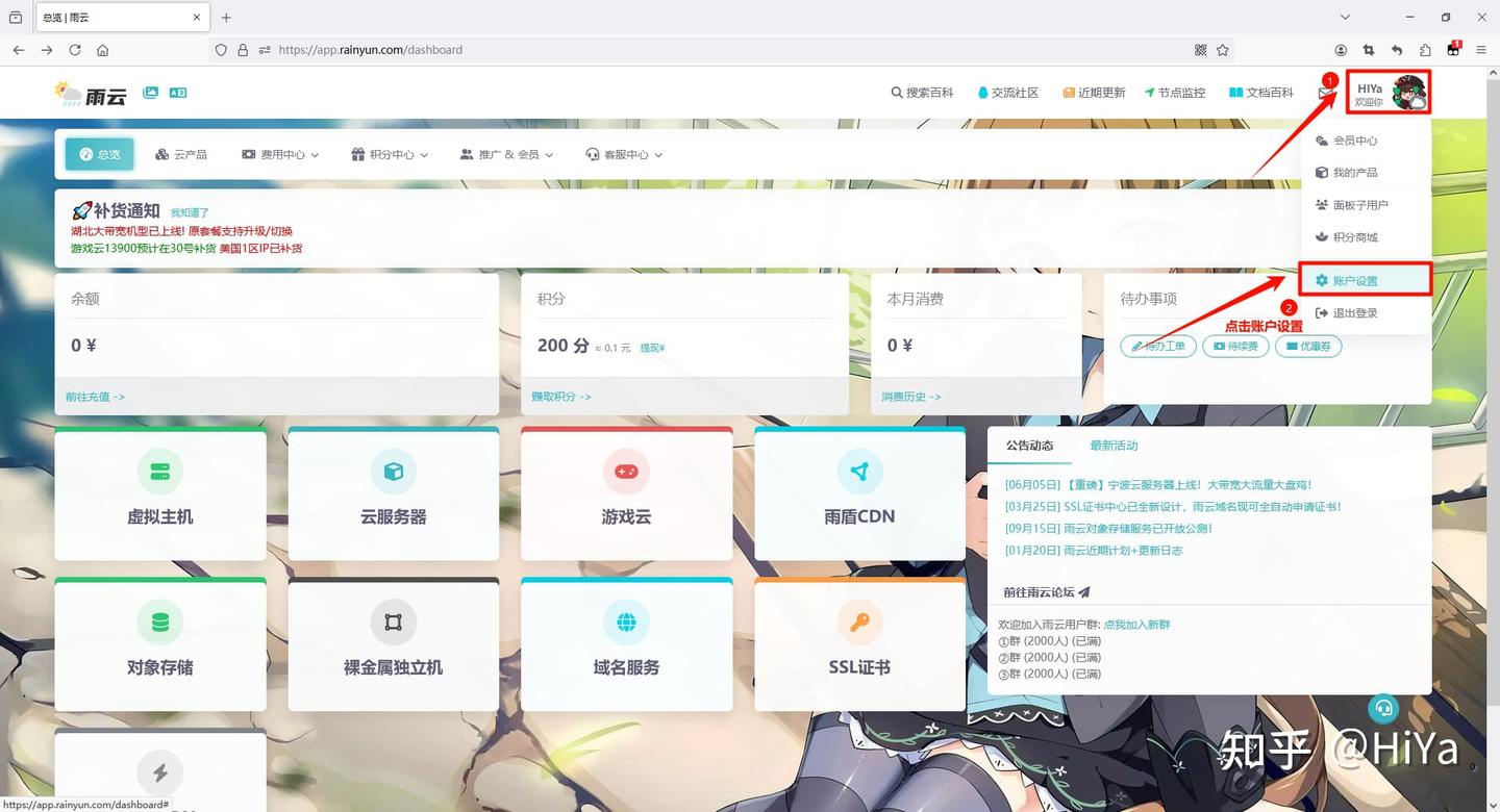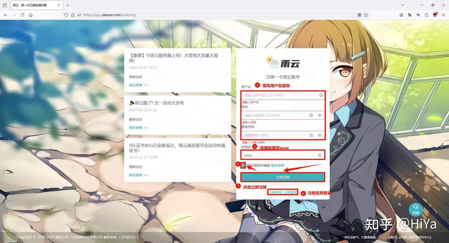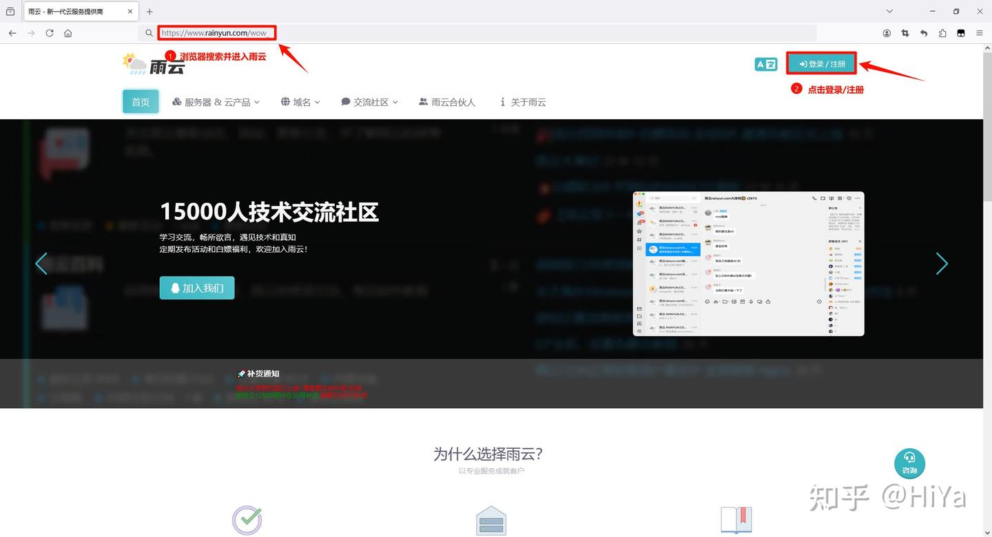 打开雨云官网,点击登录/注册