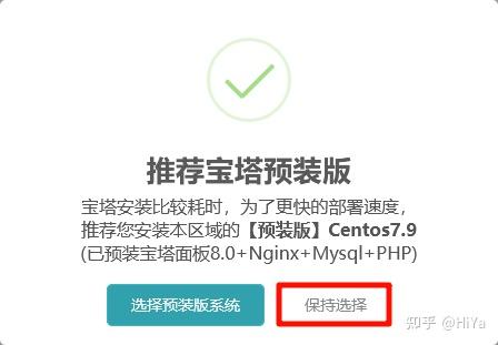 如果弹出“推荐宝塔预装版”的提示,选择保持选择