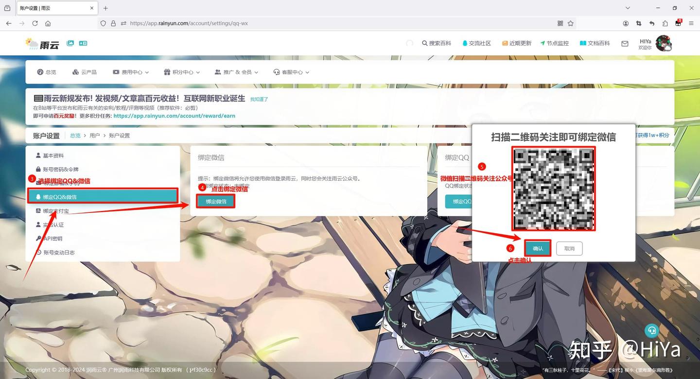 选择绑定绑定QQ&微信,点击绑定微信 使用微信扫码关注公众号后,点击确认,就绑定成功了