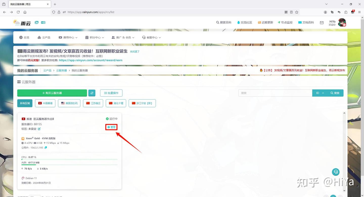 购买后自动跳到云服务器的界面,点击管理