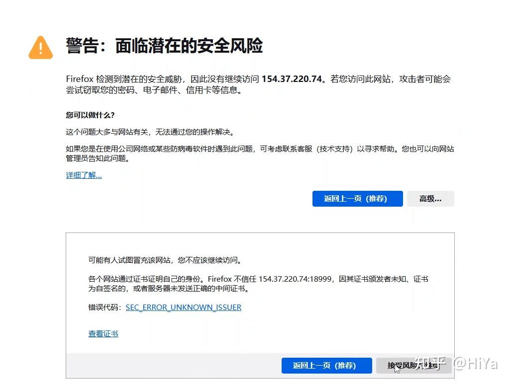 如果说网页存在安全问题,点击了高级中的接受风险并访问